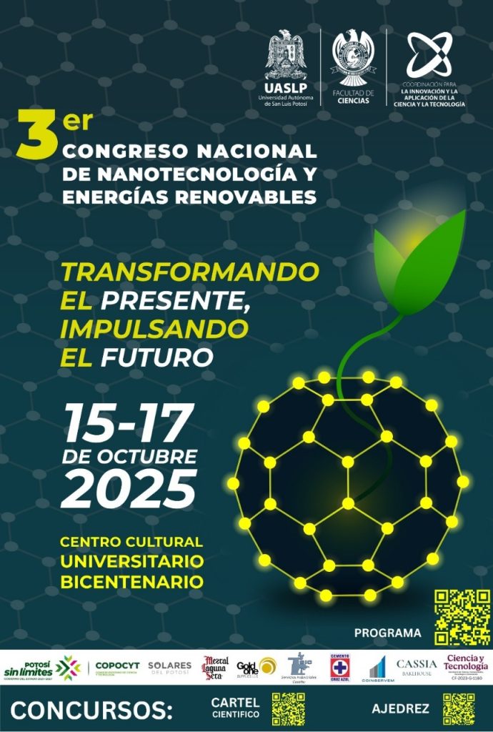 La Universidad Autónoma de San Luis Potosí (UASLP), a través de la Facultad de Ciencias, será sede del Tercer Congreso Nacional de Nanotecnología y Energías Renovables, que se llevará a cabo del 15 al 17 de octubre en el Centro Cultural Bicentenario y en la Coordinación para la Innovación y Aplicación de la Ciencia y la Tecnología (CIACyT).