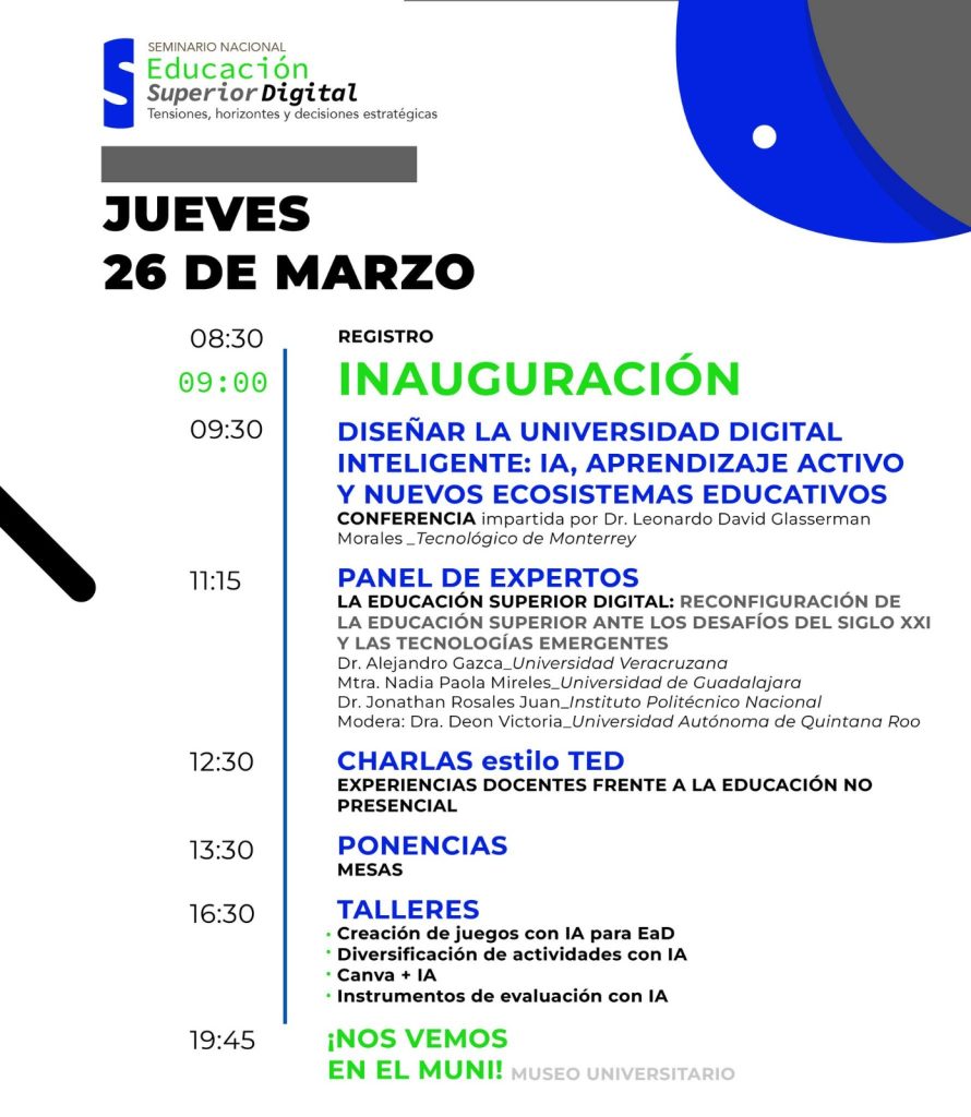 “Hoy el término que se está adoptando es educación superior digital. Ya no hablamos solamente de educación en línea o virtual; el concepto es más amplio e integra distintas modalidades mediadas por tecnología”, explicó.