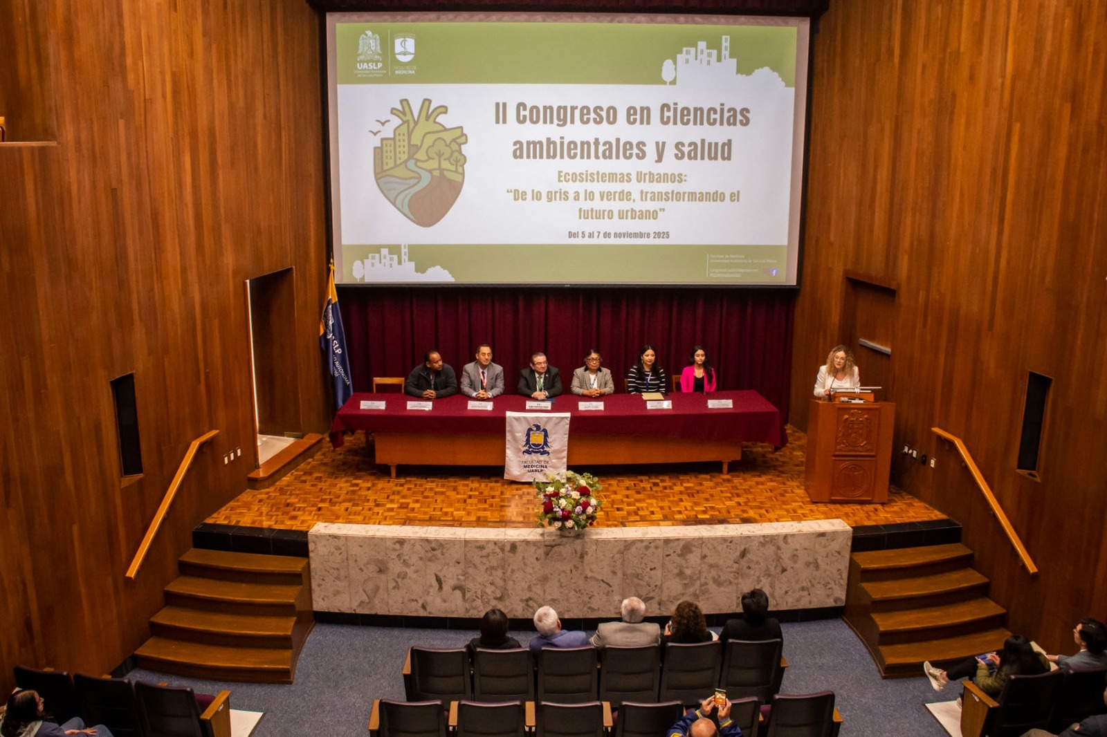 Este miércoles dieron inicio las actividades del II Congreso en Ciencias Ambientales y Salud: Ecosistemas urbanos “De lo gris a lo verde, transformando el futuro urbano”, organizado por estudiantes y docentes de la Licenciatura en Ciencias Ambientales y Salud (LCAS) de la Facultad de Medicina de la Universidad Autónoma de San Luis Potosí (UASLP). El evento, que concluirá el próximo 7 de noviembre, forma parte de la conmemoración del décimo sexto aniversario de la carrera, con el propósito de visibilizar las problemáticas ambientales y de salud que enfrentan las ciudades contemporáneas.