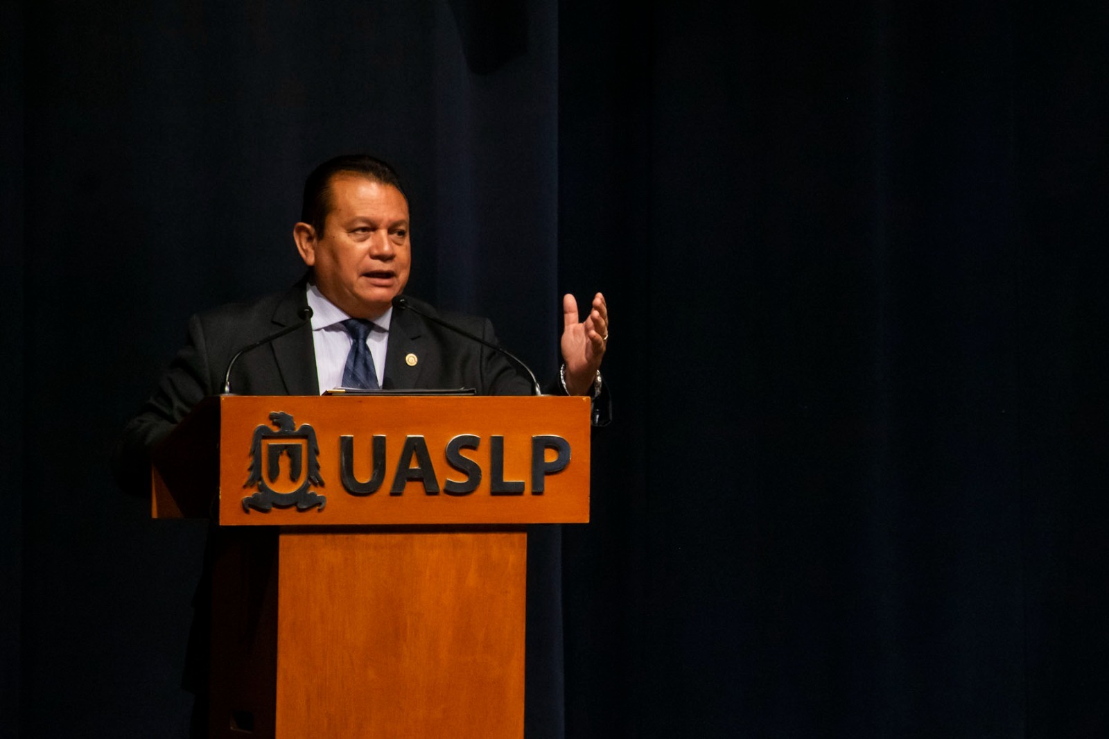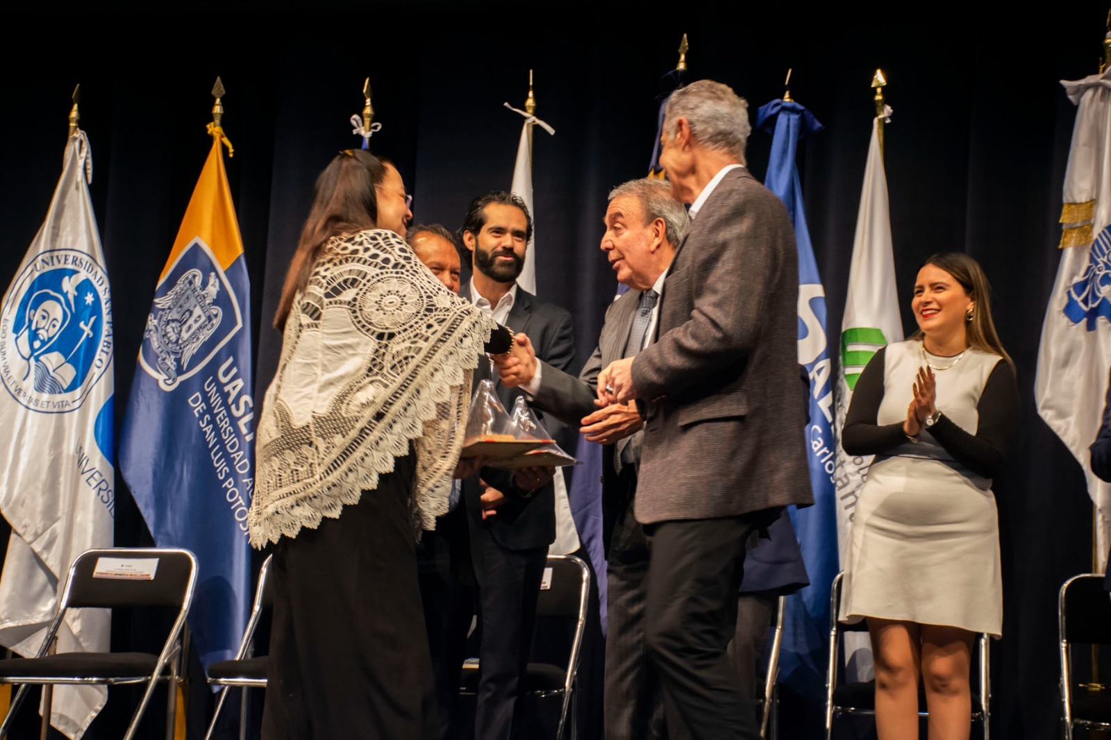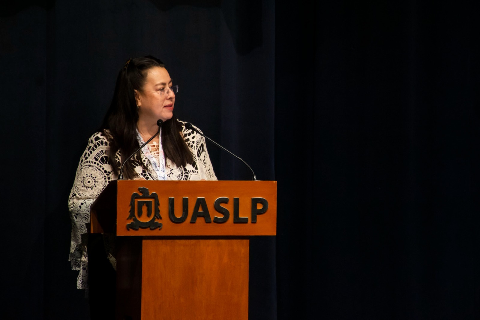 Durante la ceremonia inaugural, la doctora Claudia Elena González Acevedo, secretaria de Servicios Escolares de la UASLP, ofreció un mensaje en representación del doctor Alejandro Javier Zermeño Guerra, rector de la institución, en el que destacó que, para la UASLP, es un privilegio ser anfitriona de un encuentro que une el talento juvenil con la visión del sector empresarial, en un espacio de diálogo, aprendizaje e inspiración.