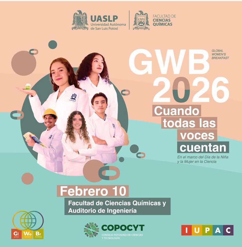 En el marco de la conmemoración del Día Internacional de la Niña y la Mujer en la Ciencia este 11 de febrero, la Facultad de Ciencias Químicas (FCQ) de la Universidad Autónoma de San Luis Potosí (UASLP) invita a participar en el Encuentro Global Women Breakfast 2026: “Cuando todas las voces cuentan”, evento que se ha consolidado como una tradición en la entidad académica, coincidieron la MC Aidé del Carmen Cruces Ríos y la Dra. Mayra Aguilar Zárate.