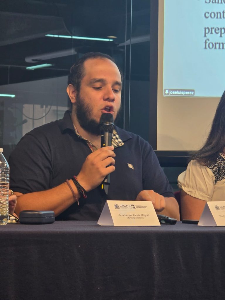 Las imágenes de ángeles músicos presentes en la pintura y arquitectura mexicana del siglo XVIII forman parte del arte novohispano, y no deben entenderse únicamente como una copia europea, pues dichas representaciones se transformaron y adaptaron a las necesidades de sus contextos, afirmó Rodrigo Vázquez González, académico de la Facultad de Ciencias Sociales y Humanidades de la UASLP, durante su participación en la Mesa III del IX Coloquio Internacional Imagen y Culturas y del VI Coloquio Discurso de la Imagen en la Tradición Mesoamericana, celebrado en el Archivo Histórico del Estado.