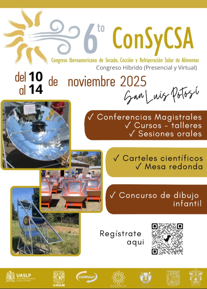 El Instituto de Física (IF) de la Universidad Autónoma de San Luis Potosí (UASLP) informa que se encuentra abierta la convocatoria de registro para participar en el VI Congreso Iberoamericano del Secado, Cocción y Refrigeración Solar de Alimentos (ConSyCSA), que se llevará a cabo en las instalaciones del Edificio Central de la Universidad, dio a conocer la doctora Fátima María Isabel De los Santos García.