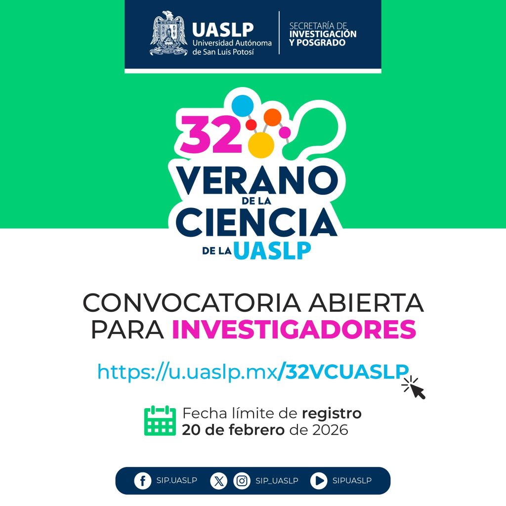 La Universidad Autónoma de San Luis Potosí, a través de la Secretaría de Investigación y Posgrado, mantiene abierta la convocatoria dirigida a investigadores interesados en participar en la edición 32 del Verano de la Ciencia, con el propósito de fortalecer la vocación científica entre estudiantes. La fecha límite de registro es el viernes 20 de febrero, informó el titular de la dependencia, doctor Amaury de Jesús Pozos Guillén.