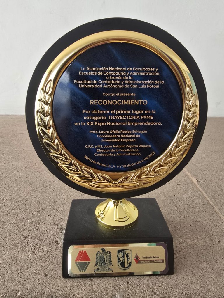 La Facultad de Contaduría y Administración de la Universidad Autónoma de San Luis Potosí (UASLP) obtuvo el primer lugar en la categoría Trayectoria PyME durante la XIX Expo Nacional Emprendedora de la Asociación Nacional de Facultades y Escuelas de Contaduría y Administración (ANFECA). El reconocimiento fue otorgado al estudiante Héctor Samuel Meléndez Báez y al contador público Ramiro Güereque Luviano, docente y asesor del trabajo.