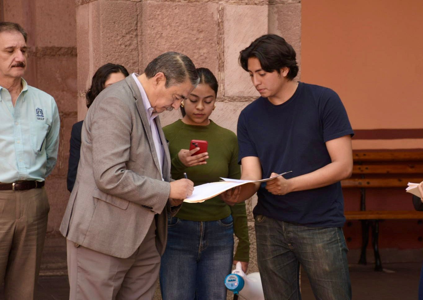 Este viernes 24 de octubre, en un marco de respeto y al continuar el acercamiento entre el estudiantado y las autoridades de la Universidad Autónoma de San Luis Potosí (UASLP), el rector doctor Alejandro Javier Zermeño Guerra recibió múltiples pliegos petitorios que recogen las solicitudes de las y los alumnos de facultades de la institución.